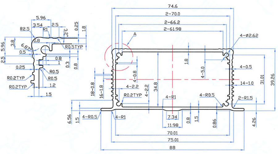 【產(chǎn)品材料】:6063擠壓鋁型材